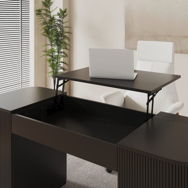 【Sleek & Modern Aesthetic】 Fluted design with a rich walnut finish elevates your office decor, adding a contemporary and professional touch.