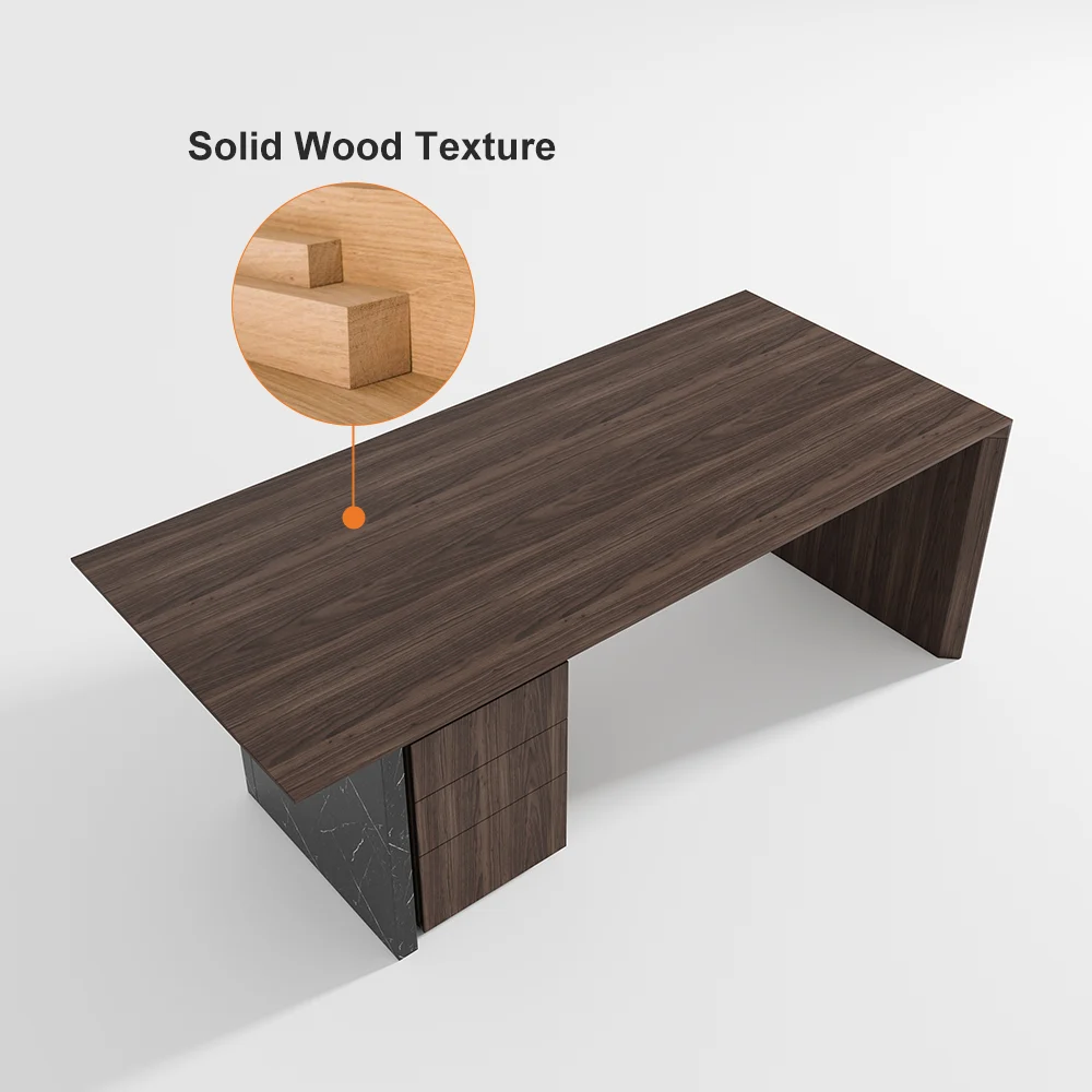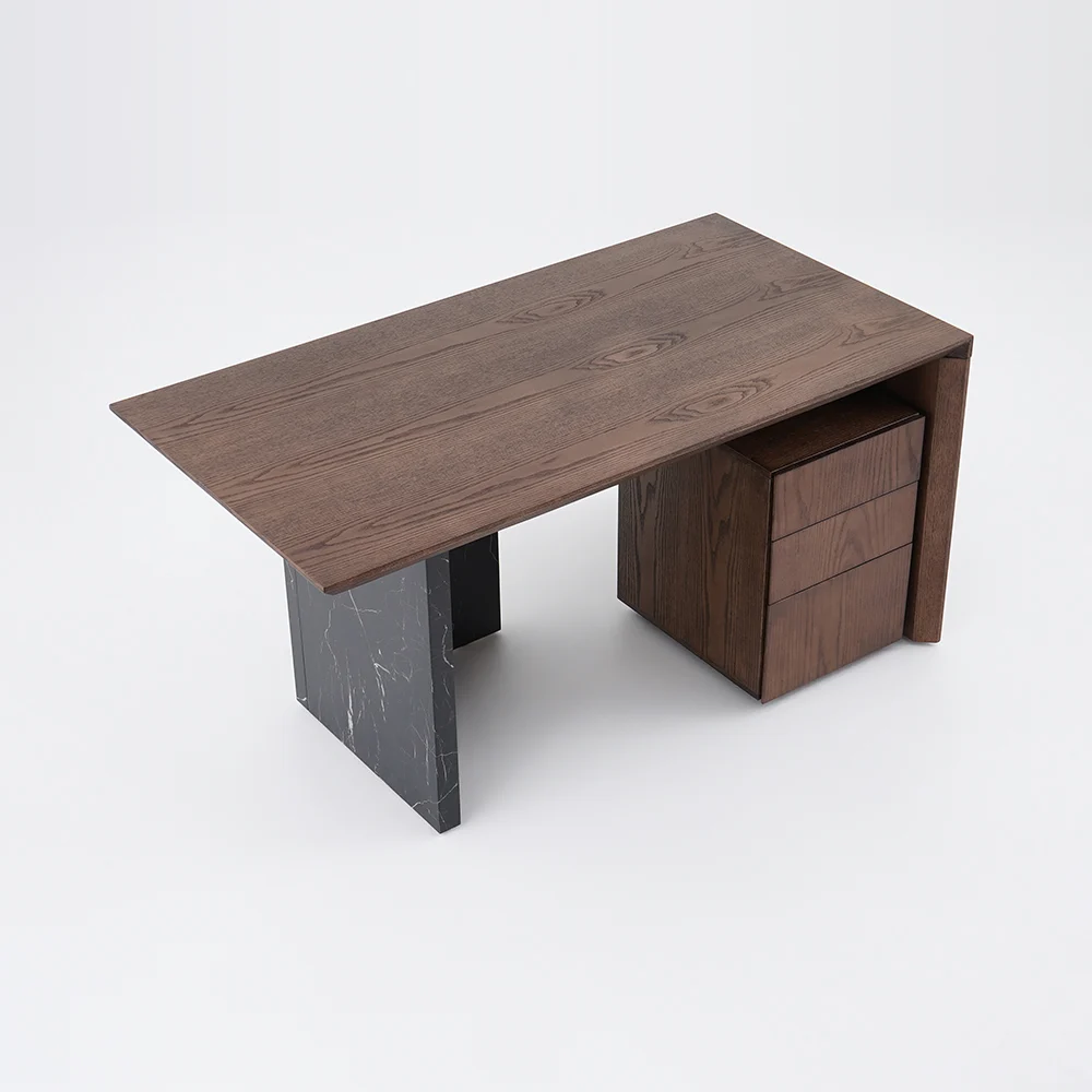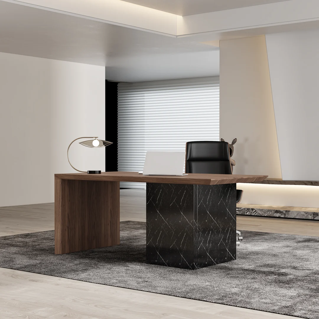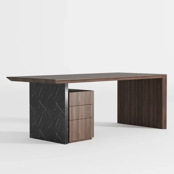 Discover the perfect blend of style and functionality with our exquisite Home Office Desk. This desk is designed for the modern professional, with a sleek Walnut & Black finish and a luxurious Marble Veneer. With a spacious desktop and a movable filing cabinet, it offers ample room and seamless storage solutions. Available in two sizes and colors to fit any workspace.