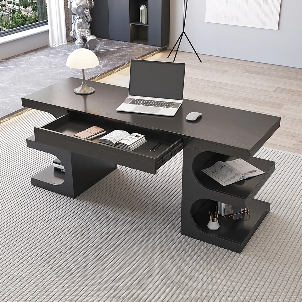 Modern Black Writing Desk Office Desk with 1 Drawer & 4 Open Shelves (64.2″)