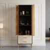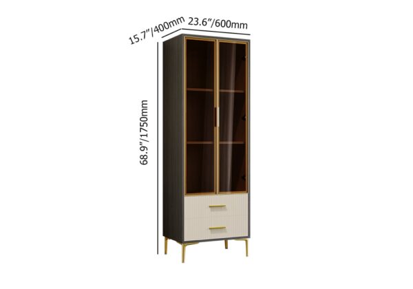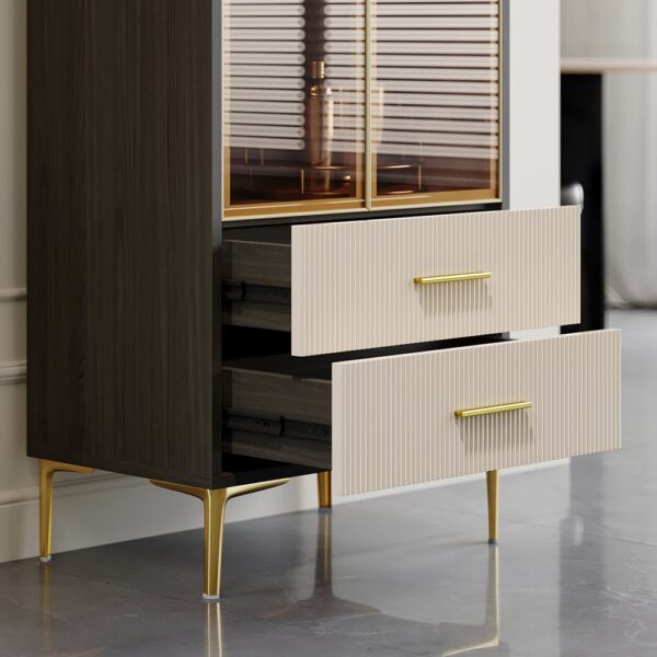 Add flair to your living space with this modern bar cabinet. It provides a contrast in color that gives a mannered vibe to refresh your interior decor. Glass doors allow you to display your wine bottles and collections. Two-drawer is included to allow extra space for versatile and practical use. Constructed from quality MDF and durable stainless steel, it ensures sturdy support and stability for a timeless look and beauty.