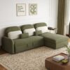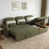 Left seat transforms into a sleeper for guests, while the right chaise offers a daybed-style space for everyday relaxation.
