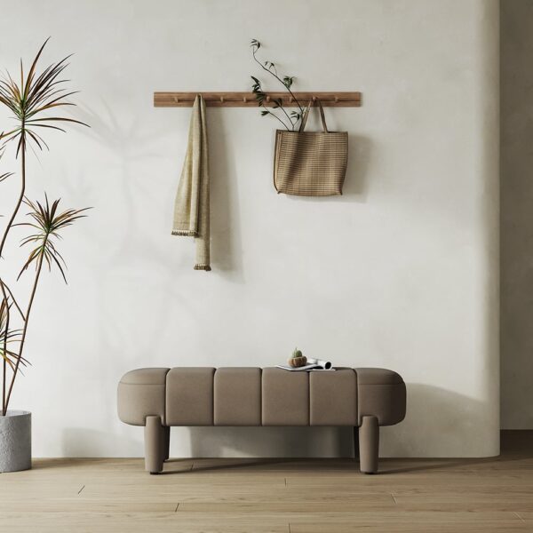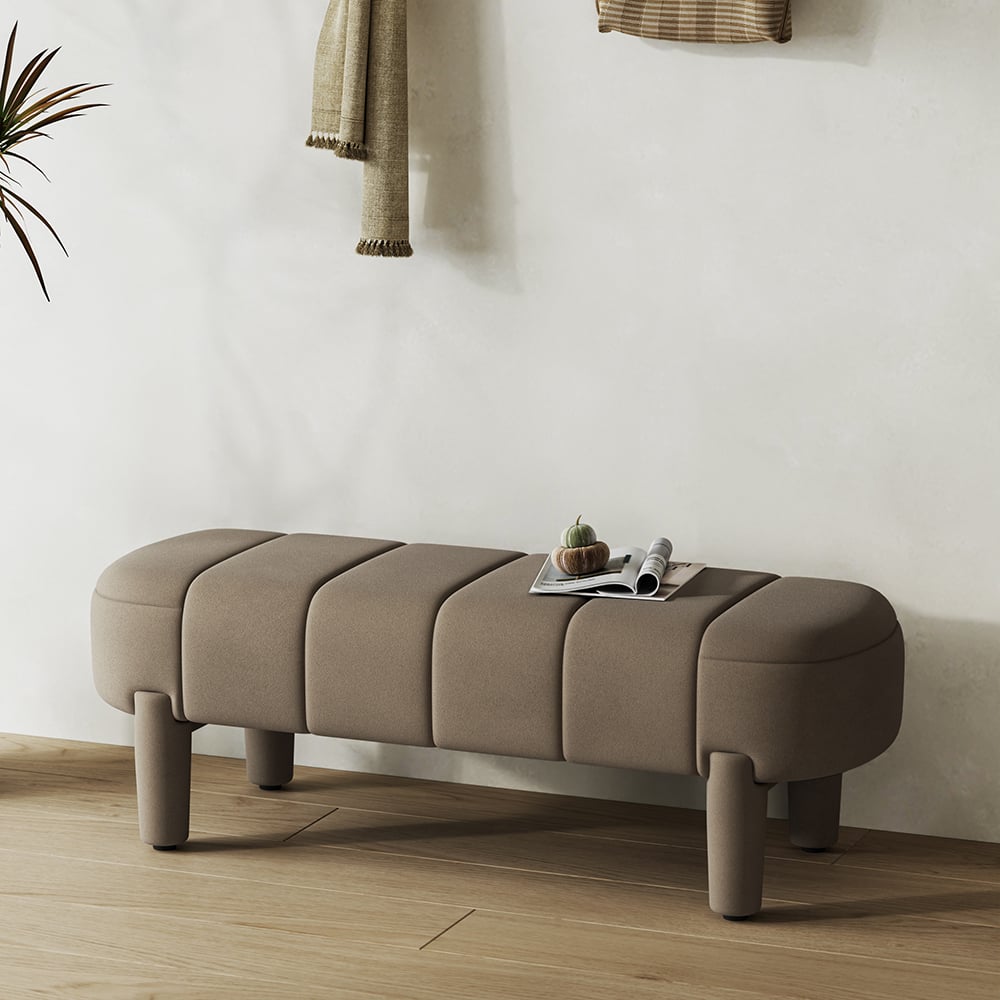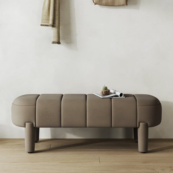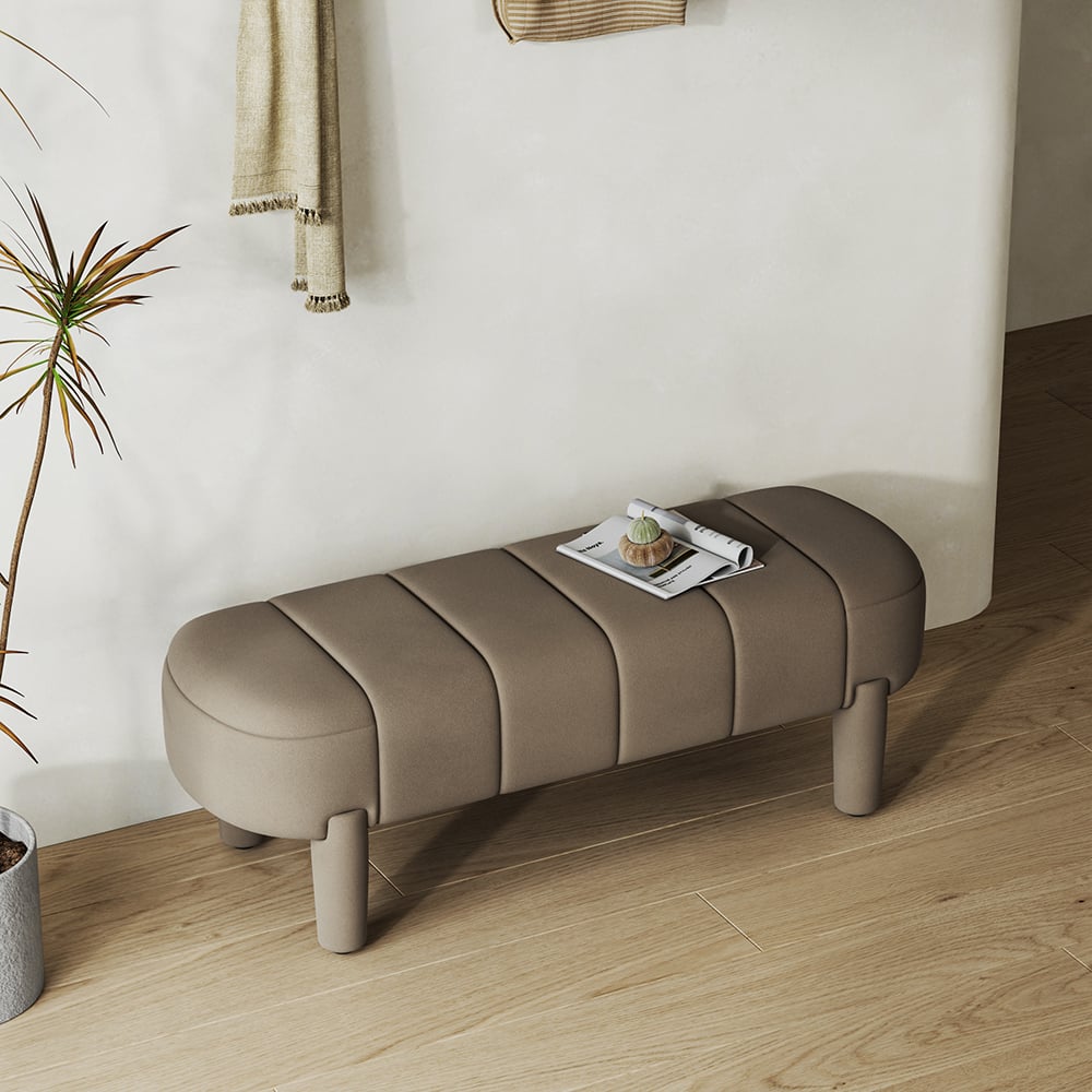 Add a touch of elegance to your entryway or living room with this modern upholstered line tufted bench. The velvet cushion is filled with foam for added comfort, while the wooden stool legs provide stability and support. With its timeless design, this bench is a practical and stylish addition to any home.