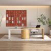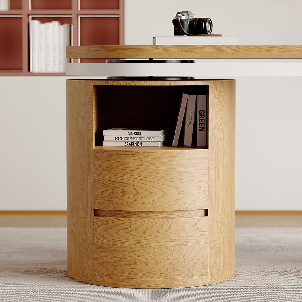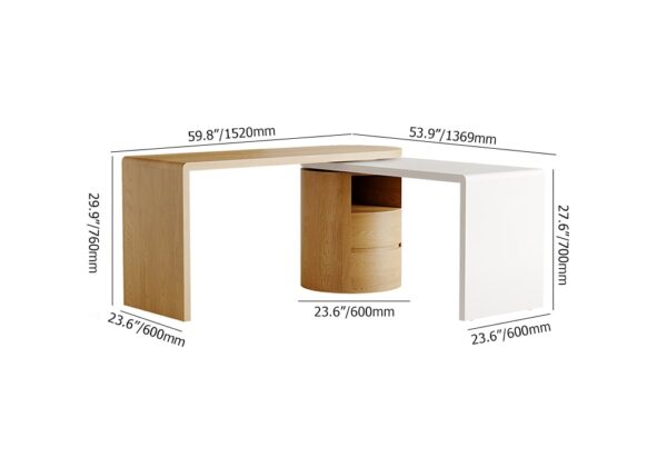 Modern Two-Tone Aesthetic: Natural wood desktop with white accents creates a fresh, contemporary office look.