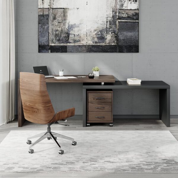 Modern Rotatable L-Shaped Executive Desk with Movable File Cabinet (59.8″ )