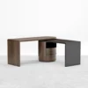 Your home office is allowed to be stylish too. Dress up your office space when you add the sophisticated style and modern design of this L-shaped desk in walnut. Its spacious top surface provides you with all the room you need for your must-have desk essentials like your laptop, stacks of notepads, your array of pens and of course your coffee mug too. It features two storage drawers that open and close on smooth metal runners for easy access storage of miscellaneous items likes loose papers and folders. It also features one open shelving with a fixed shelf for all your other office necessities.