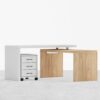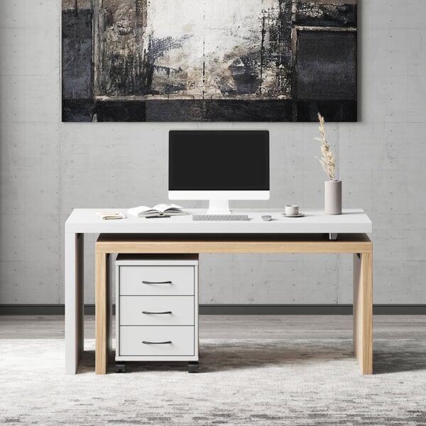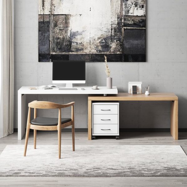 Upgrade your home workspace with this stylish L-shaped desk. Perfect for any room, it features a modern design a movable file cabinet with 3 storage drawers for optimal organization. The ample writing space and L-shape maximize your corner space, blending seamlessly with contemporary styles.