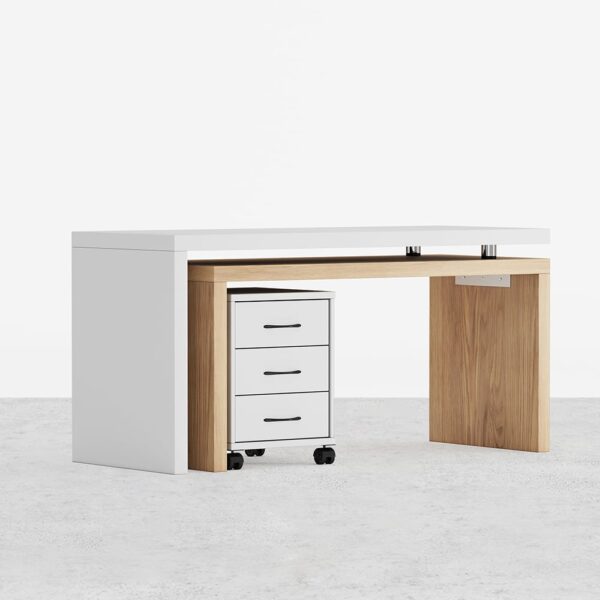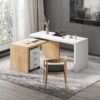 Modern Swivel Desk & Off White Home Office Chair Set Movable File Cabinet L-Shaped