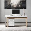Modern Swivel Desk & Off White Home Office Chair Set Movable File Cabinet L-Shaped  weights dimensions image