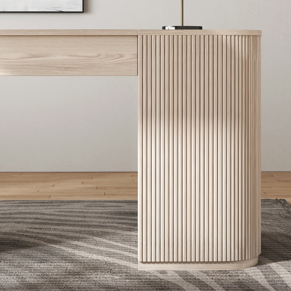 【Design】Sleek walnut finish with a stylish fluted design, adding a contemporary touch to any office.