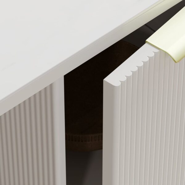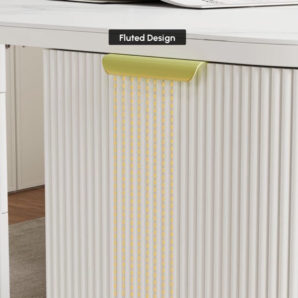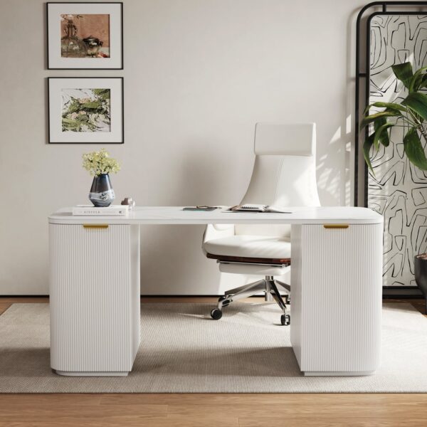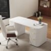 Elegant Fluted Wood Design: The textured ash wood base adds architectural sophistication, elevating your office aesthetic.