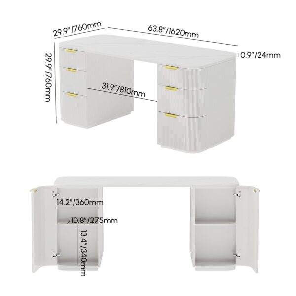Ample Dual-Sided Storage: Six drawers (including file storage) and two cabinets keep your workspace clutter-free and everything within reach.