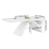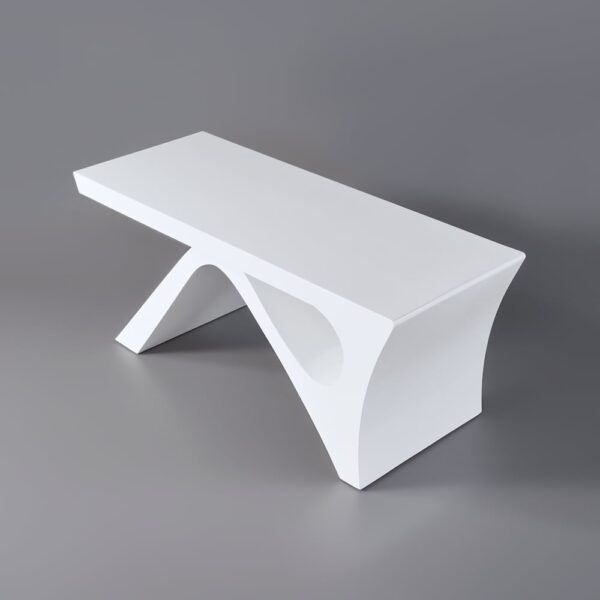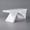 Upgrade your workspace with this sleek rectangular desk, combining modern aesthetics and durable engineered wood construction. The geometric pedestal base ensures rock-solid stability, while the glossy white finish resists stains and wipes clean easily. Perfect for home offices or workspaces, its curved edges and sculptural lines add a touch of contemporary elegance.