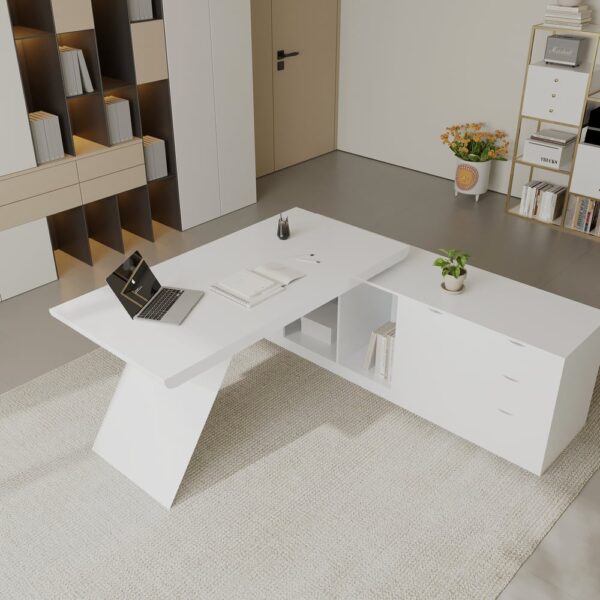 【L-Shape Design】Fits corners, maximizes space, enhances storage, and keeps multitasking essentials within reach.