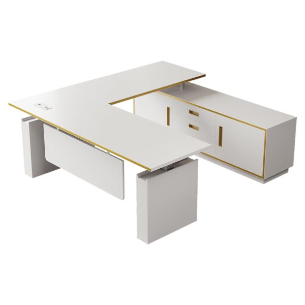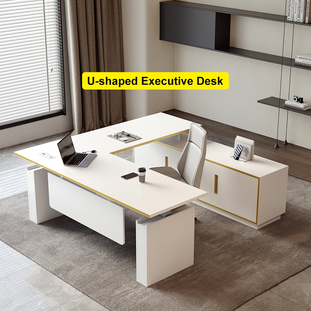 Executive U-Shape Design: Wraparound workstation provides 270° access to all work materials within arm’s reach.