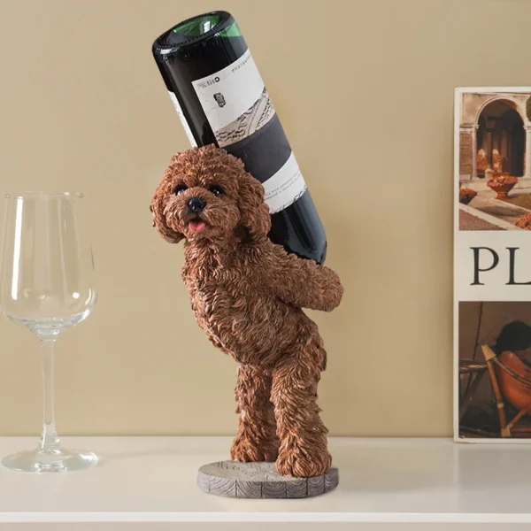 Modern Wine Rack Brown Resin Teddy Dog Decorative Countertop Wine Bottle Holder