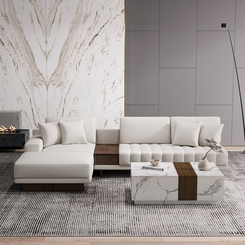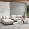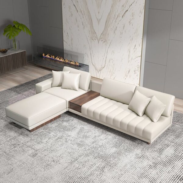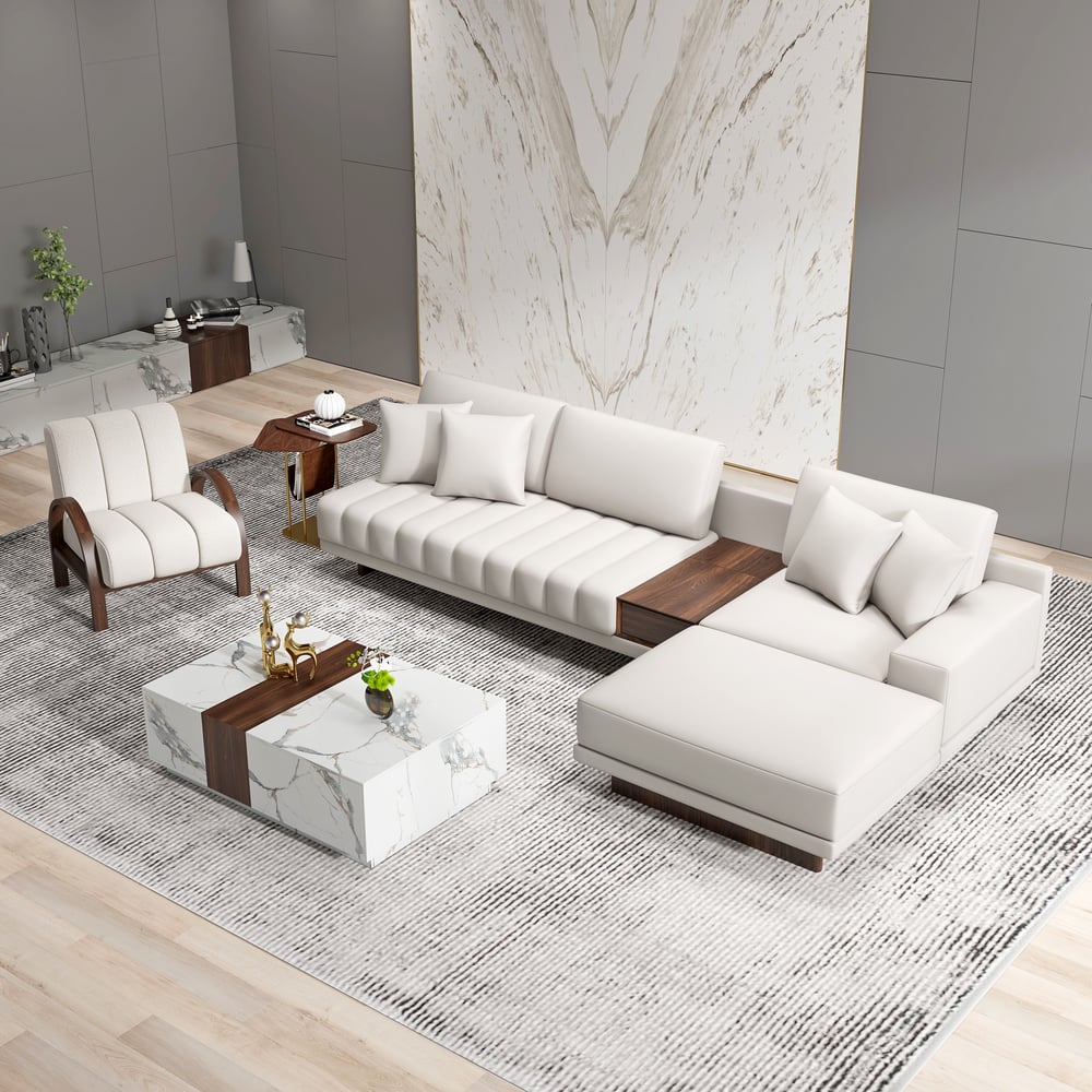 This contemporary 126″ L-shaped sectional sofa, featuring modular components with a matching ottoman. Its modular design gives great flexibility to arrange the units in any way that fits different room layouts. Perfect for large living rooms, the sectional sofa brings together style, comfort, and functionality into one piece.