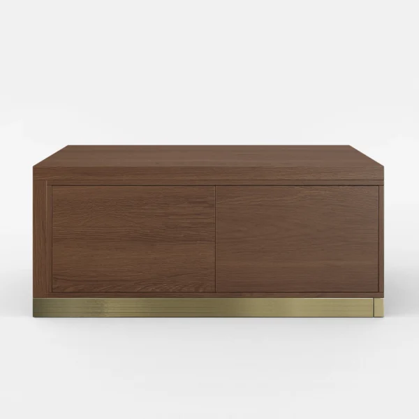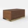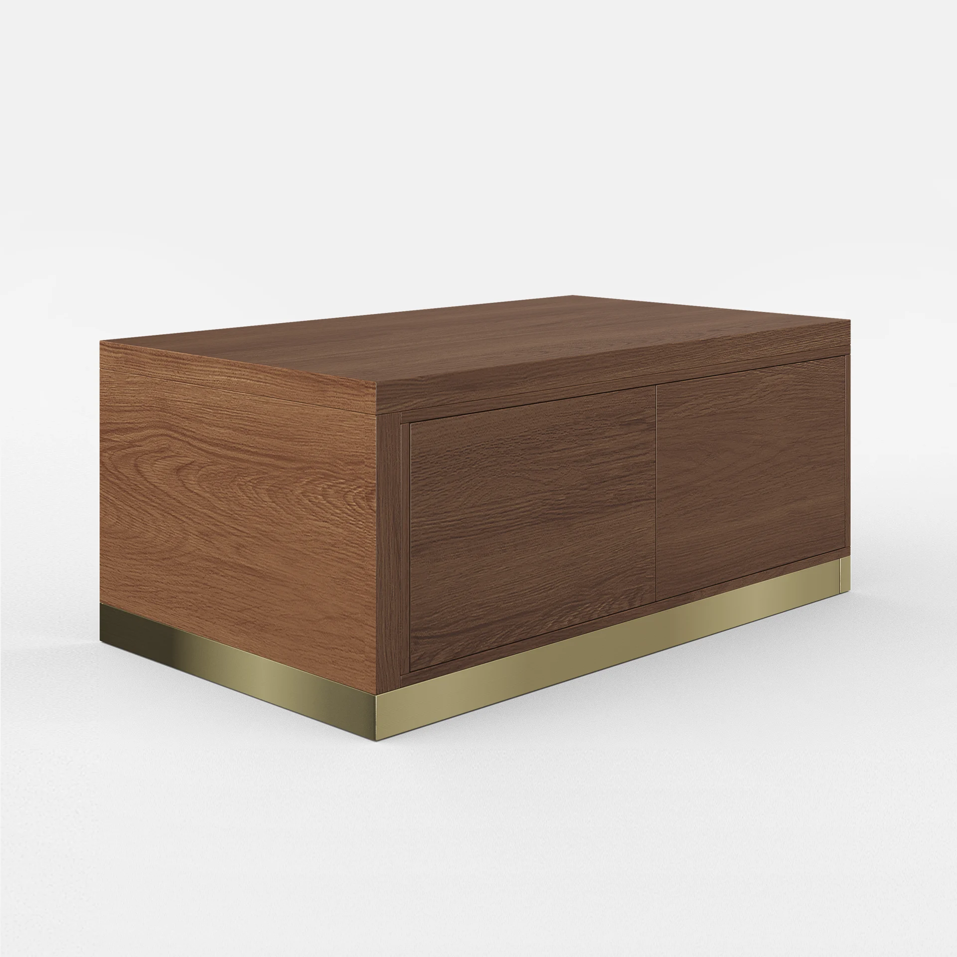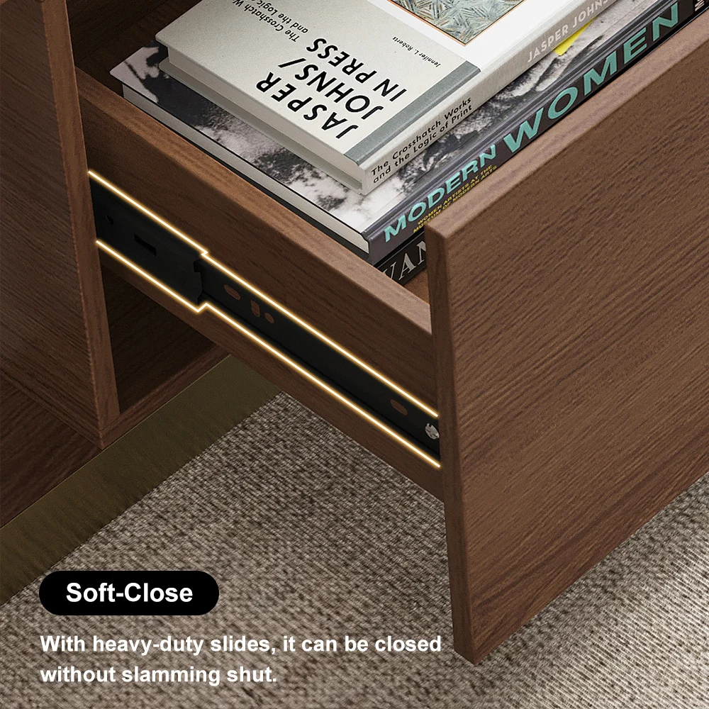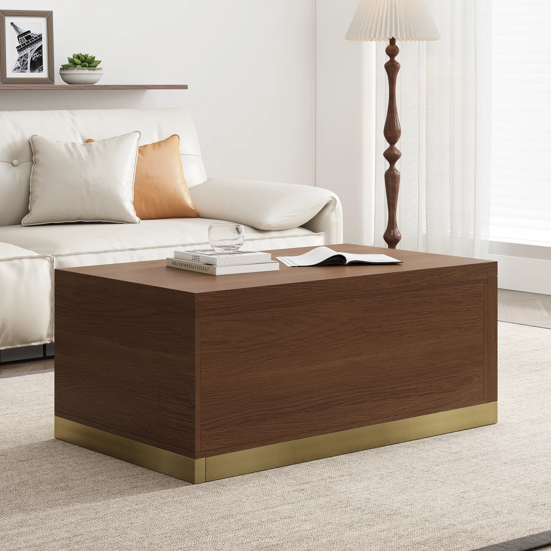 This modern rectangular coffee table features a walnut finish and an extendable design for versatile use With two spacious drawers, it provides ample storage for essentials Its sleek, minimalist style enhances any contemporary living room with functionality and elegance