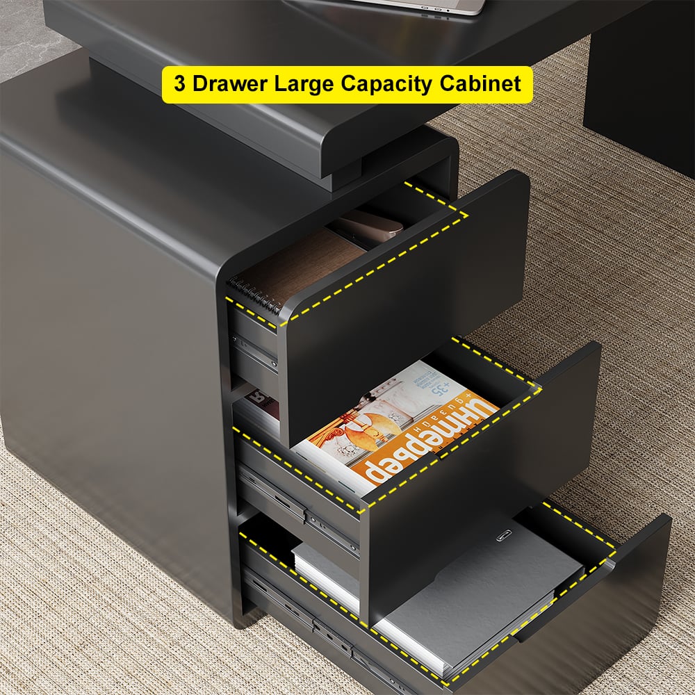 【Smart Storage Solutions】 Three spacious drawers (with silent slides) organize documents, stationery, and tech accessories, keeping your workspace tidy.