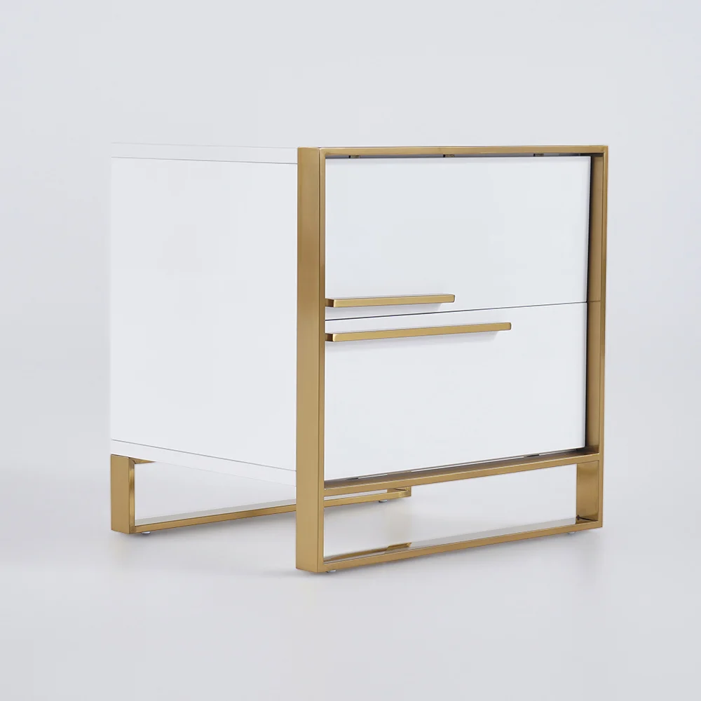 Made of high-quality and ecologically friendly wood and stainless steel, this nightstand is premium and durable, and has a long life. The high glossy paint surface makes it seem more elegant and sophisticated while providing extra decorative elements to your home design. This modern nightstand adds a touch of luxury to any bedroom and provides a fresh look to your bedroom.