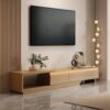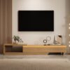 This contemporary extendable TV stand with three spacious drawers, providing a holding capacity for TVs up to 80 inches in size. It combines modern design with high-quality material to make it the perfect unit in any living area. This TV stand is perfect for holding media devices while adding a modern touch to beautify any living space.