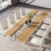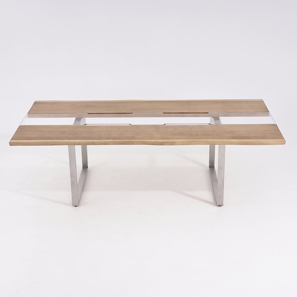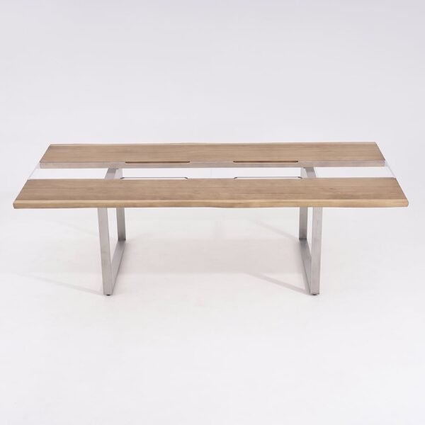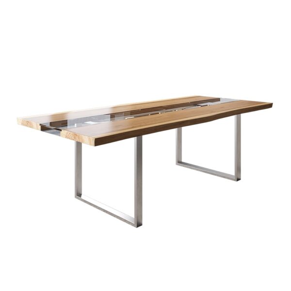 Striking River Design: Natural pine wood “banks” flank a crystal-clear acrylic “river” center for a breathtaking artistic statement.