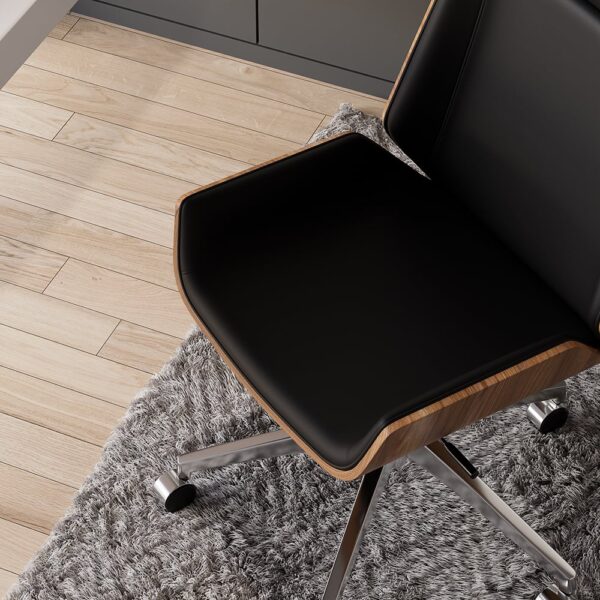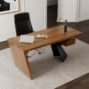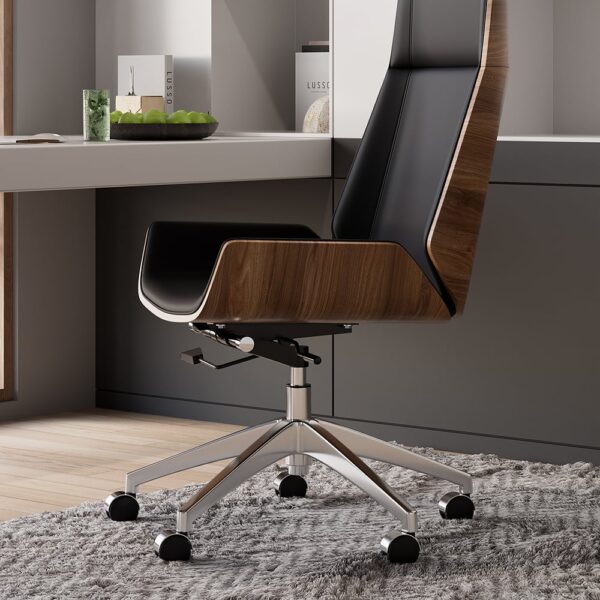 Ergonomic Executive Chair – Features a wide faux leather seat, solid wood back, tilt control, height adjustment, and flared arms for all-day support.