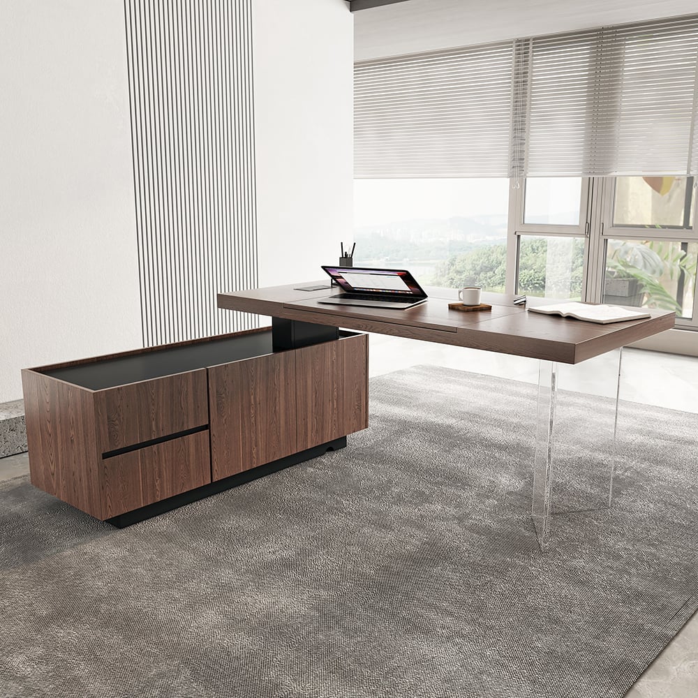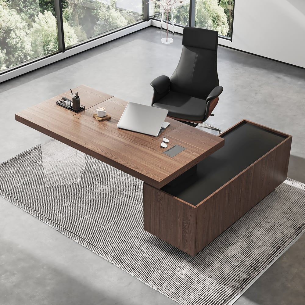 Modern Walnut Aesthetic – Combines a warm wood finish with contemporary design, creating a stylish and professional workspace.