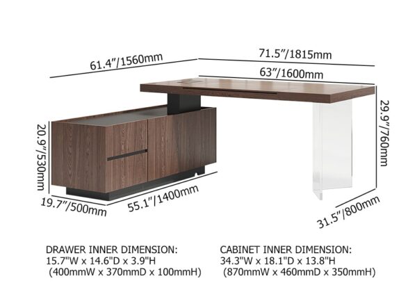 Desk Dimension71.5”L x 61.4”W x 29.9”H