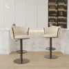 The Sweave modern bar stools epitomize elegance and comfort to bring style into your home. Soft off-white velvet upholstered, these stools feature a curved back and foam-padded seat for added support. The adjustable height with 360° swivel allows for a seating experience that is tailor-made and smooth. These bar stools boast a solid stainless steel base with an integrated footrest, marrying durability with style for your kitchen or dining room, bringing both luxury and practicality to any modern space.