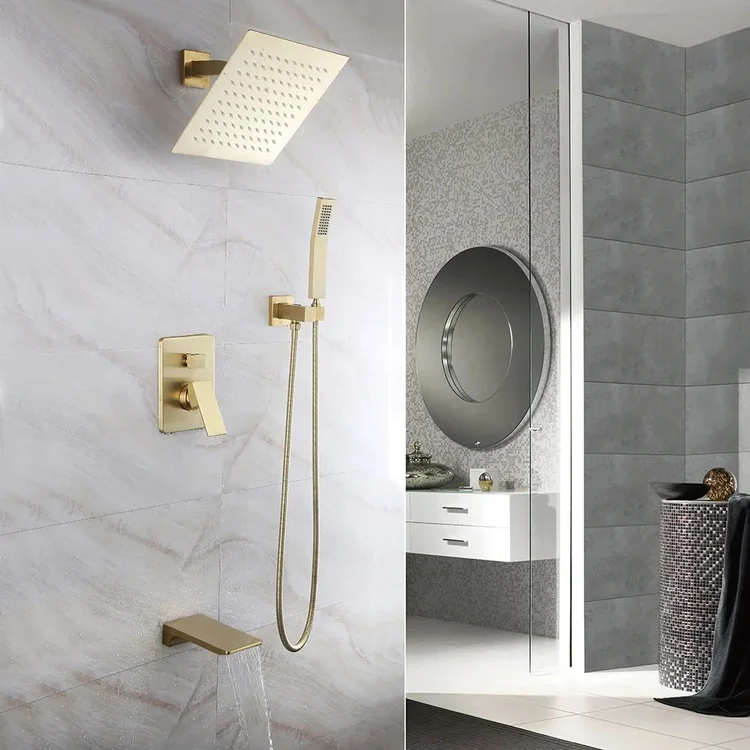 – Includes 10″ x 10″ (250mm x 250mm) rain shower head, hand shower, wall-mount shower arm, 3-functional valve and a tub spout.