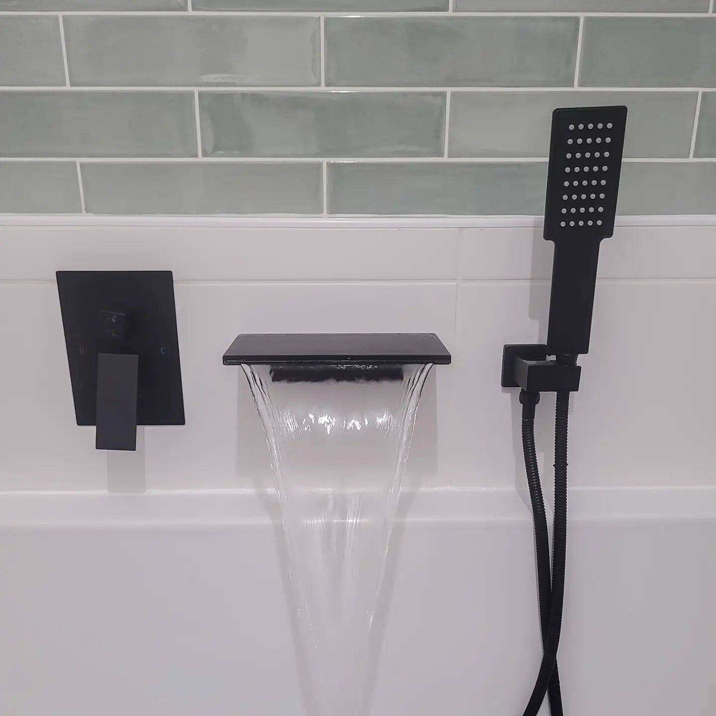 Solid Brass Waterfall Single Handle Wall-Mounted Bathtub Faucet Tub Filler in Black