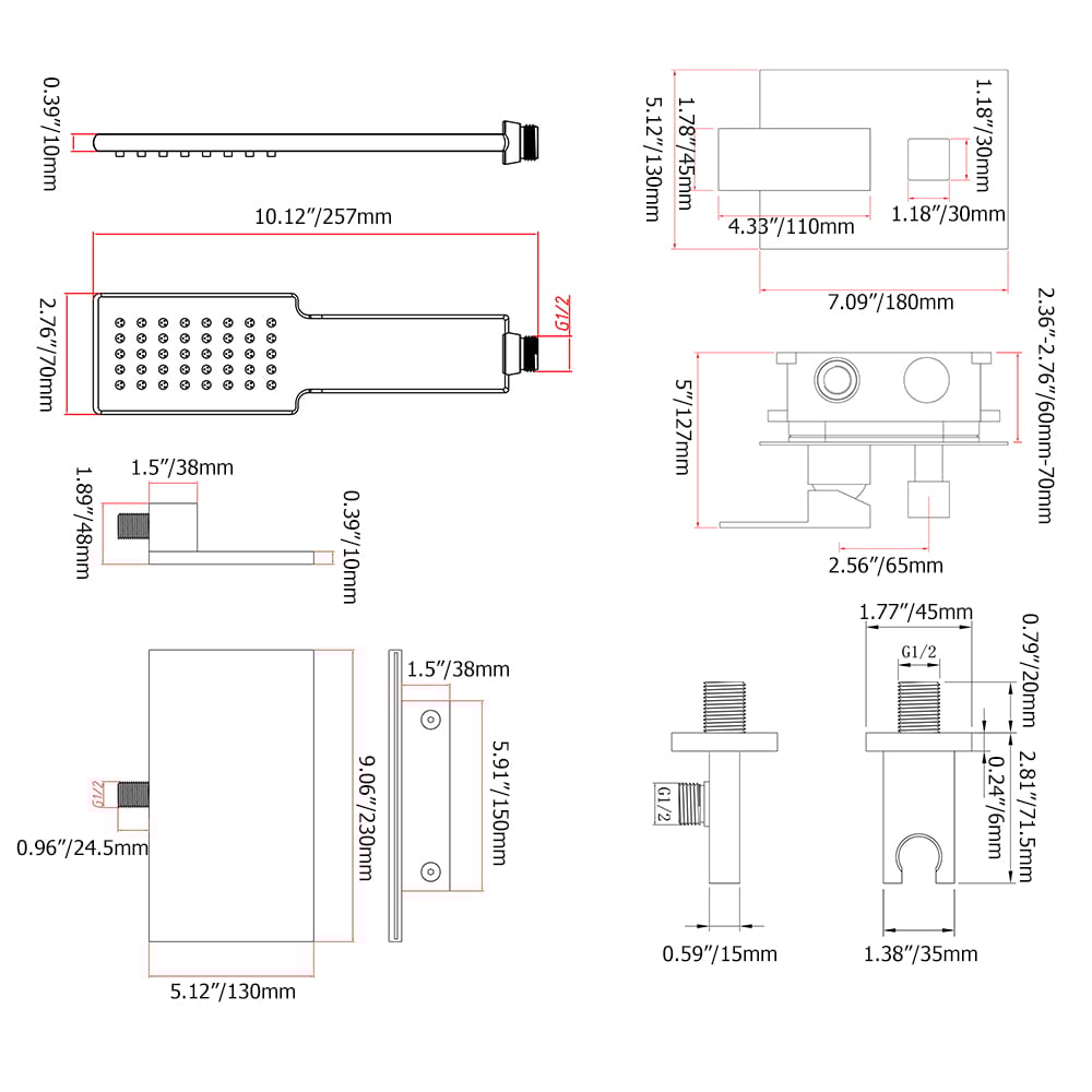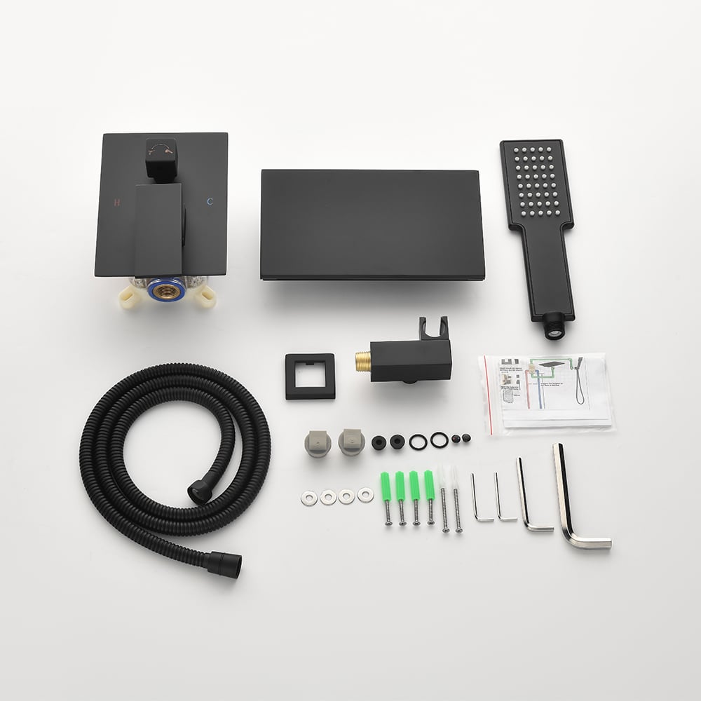 Faucet Spout, Rough-in Valve & Trims, Hand Shower, Handshower Holder, Shower Hose, Mounting Hardware