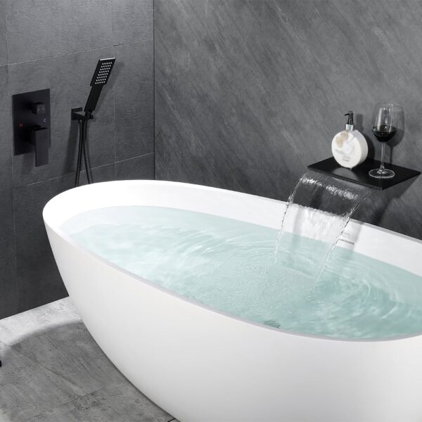 This bathtub faucet with a refined style will brighten up any residential or hospitality setting. It features a beautifully even spout to deliver a graceful sheet of water, transforming the water flow into a soothing miniature waterfall. The single-handle design offers smooth operation to provide precise control. While a handheld shower at easy access improves your bathing experience, a 2-function valve makes operation a breeze. Available in four colors, it fits into your existing decor effortlessly. With smooth, graceful lines and curves, this sleek faucet will add a touch of style and sophistication to any bathroom.