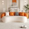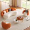 Add a bold statement to your living room with this vibrant sofa set. The playful blend of orange and cream tones, smooth curves, and plush seating create a fun yet sophisticated vibe. Perfect for modern interiors that embrace personality and comfort.