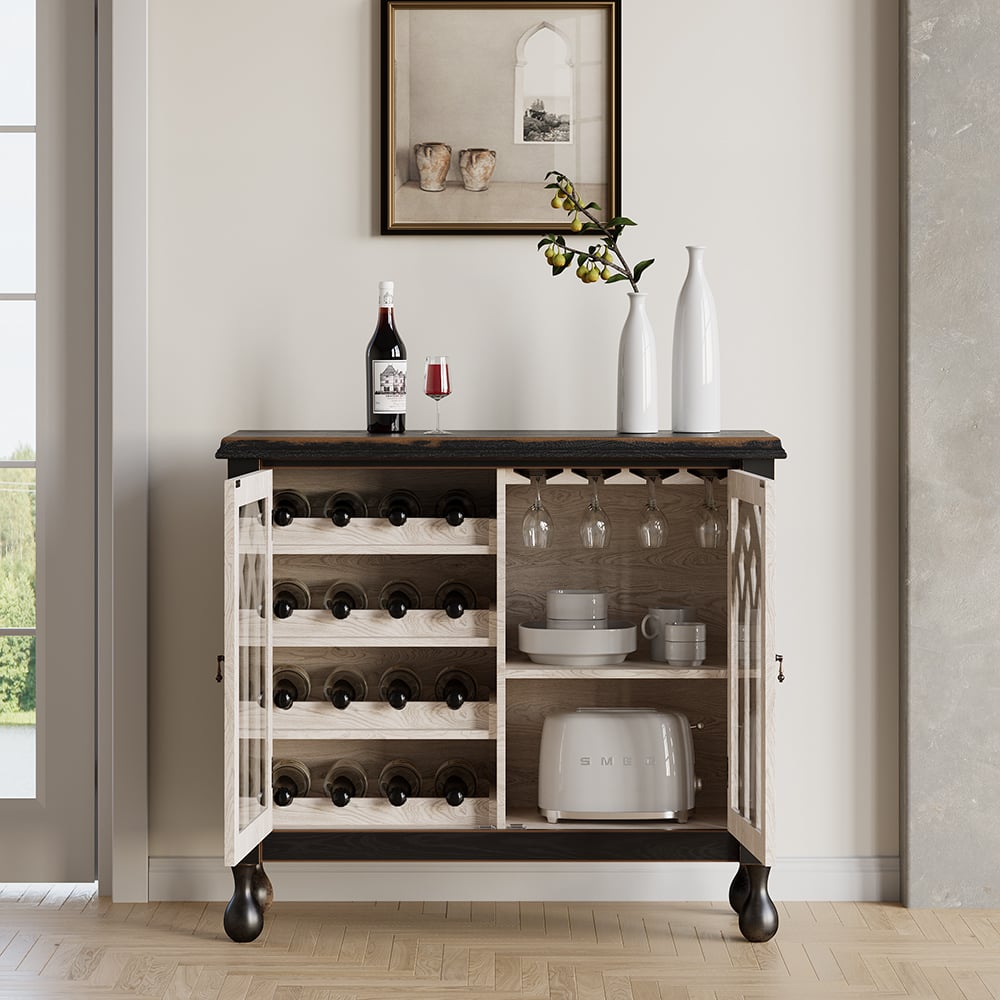 Traditional Black Bar Wine Rack Cabinet with Wine Holder Wood Home Bar Cabinet