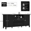 - Design for 60″-65″ TVs With top measuring 58″ L × 16″ W/ 147 cm L × 40 cm W and bearing up to 220 lb/ 100 lb, this TV storage cabinet best suits TVs from 60″ to 65″. If your TV is a little bit larger than 65″ but below the weight capacity, this TV console table is still your ideal pick
