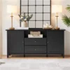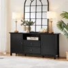 - Generous Storage The 5 compartments and 2 drawers of this 58″/ 147 cm long media console break its application boundary. Beyond housing TV, electronics in the living room, its spacious top and storage area make this media console table perfect in other rooms to house lamps, soundboxes, fans, or gather articles
