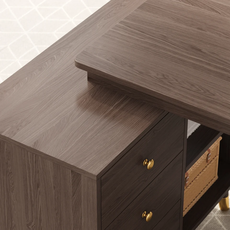 【L-Shape Design】Fits corners, maximizes space, enhances storage, and keeps multitasking essentials within reach.