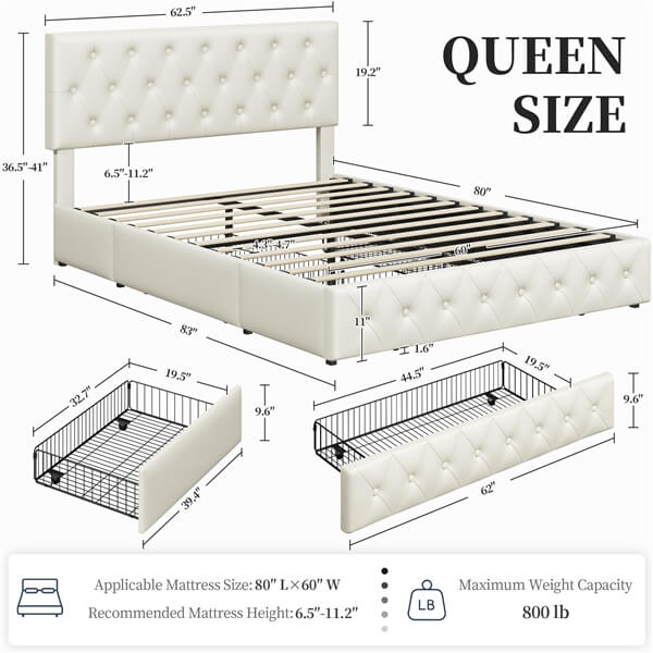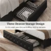 - Drawer Storage: Comes with 3 wire netting drawers with rollers under the bed, this queen bed frame with drawers provides convenient storage space for keeping your off-season clothing organized, creating a clean and tidy look.