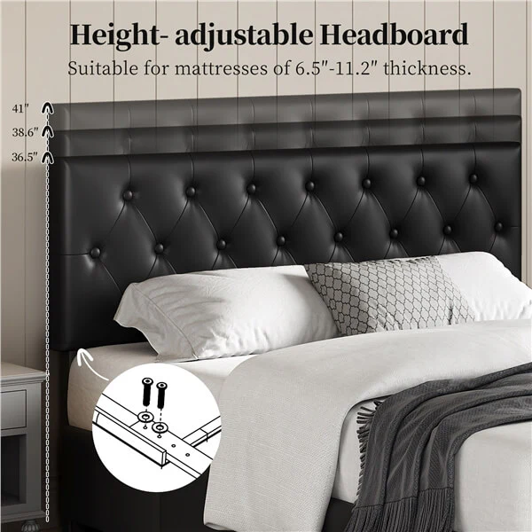 - Height-Adjustable Headboard: The headboard height boasts threeadjustable positions including 36.2″, 38.6″, and 41″ to fit your needs, andyour relaxation in bed will upgrade to the next level.