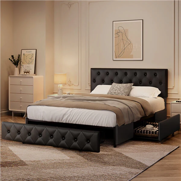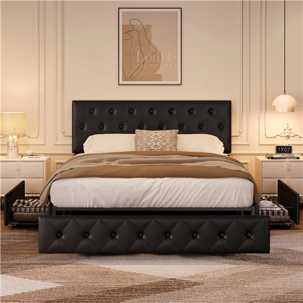 Easy Cleaning: Smooth painted metal surface and PU leather upholstery make cleaning this storage bed frame a breeze. You need to wipe it with a dry or damp cloth.