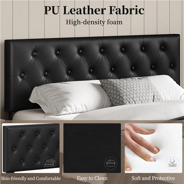 - Elegant and Luxury: Shaped in sleek and clean outlines with a diamond tufted headboard, this faux leather platform bed is versatile to fit any room décor style, exuding timeless elegance in your bedroom.