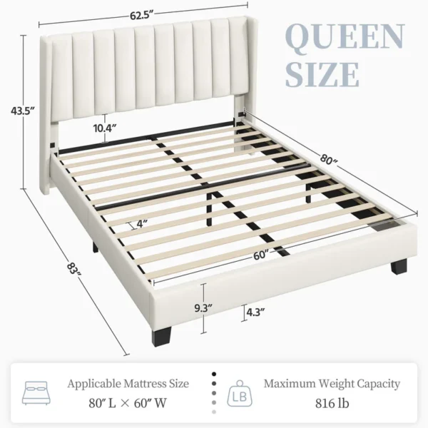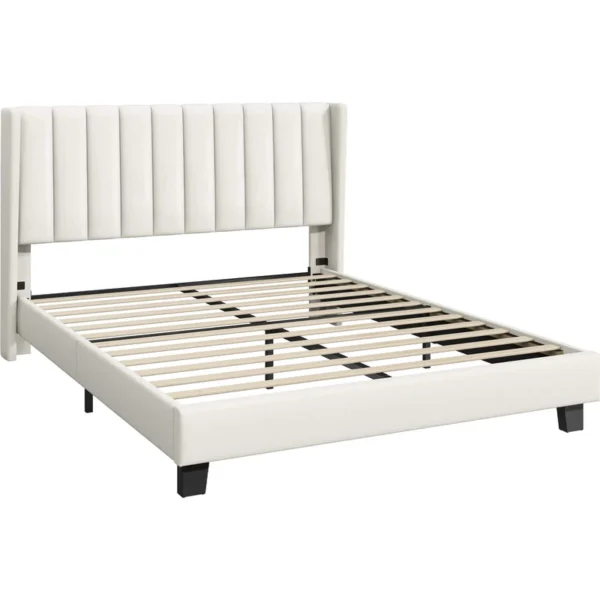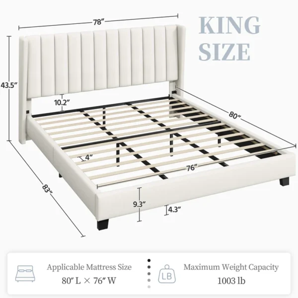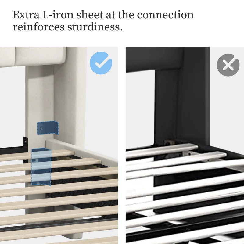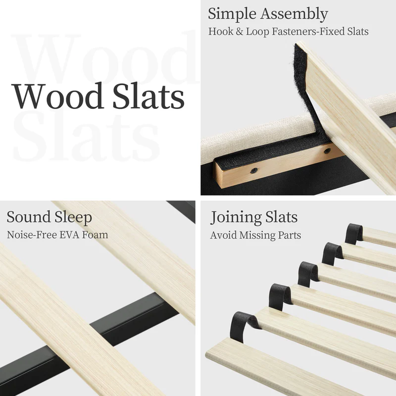 - 【Headboard With Wing Side Design】Designed with a wing side on the wide upholstered headboard, it locks into place to prevent slipping and mattress movement.