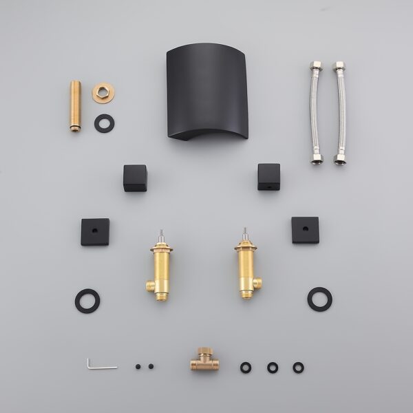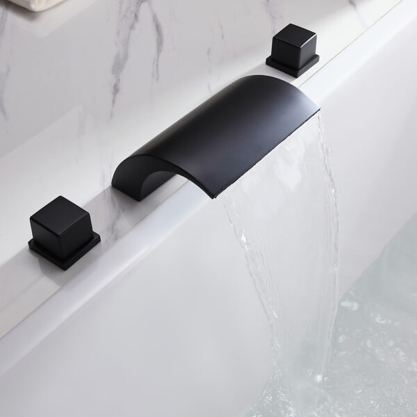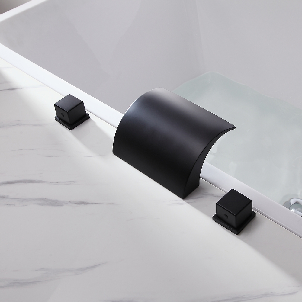 Designed with a contemporary style, this roman tub faucet is complimented by twin zinc alloy handles for a gorgeous exterior. Featuring a waterfall spout, it delivers a gentle sheet of laminar water and creates a wonderful waterfall effect. Come with solid brass construction and a matte black finish, this bathtub faucet ensures excellent durability and performance, and adds a high-end lifestyle as well. Its intriguing design with soft curves and clean lines is sure to complement any bathtub. A perfect addition to your space.