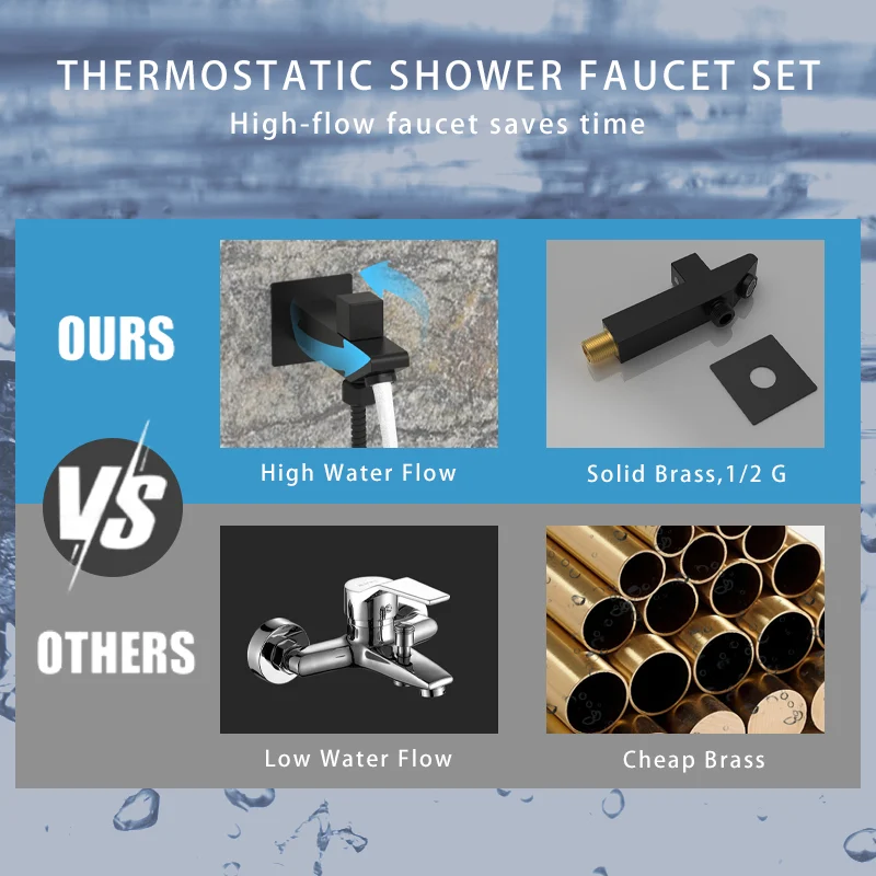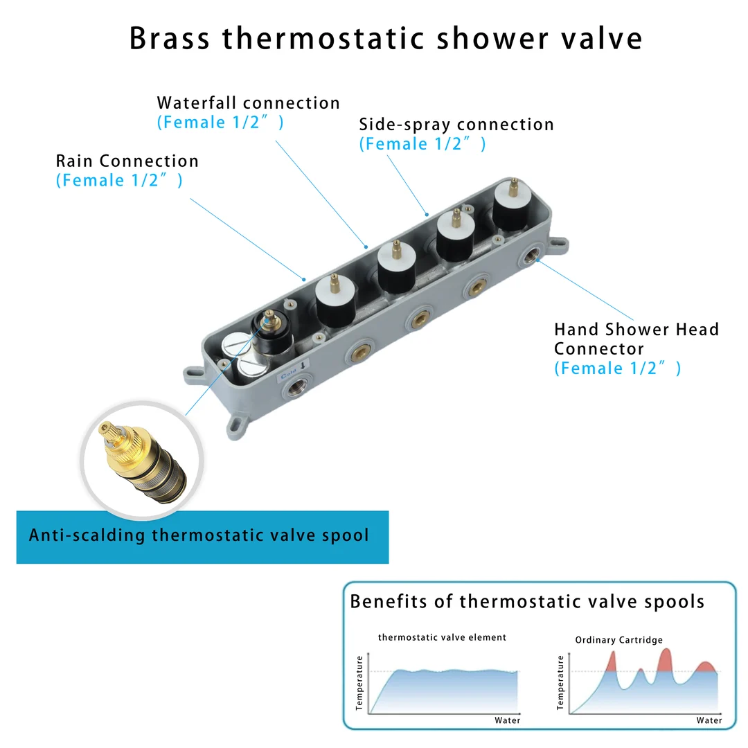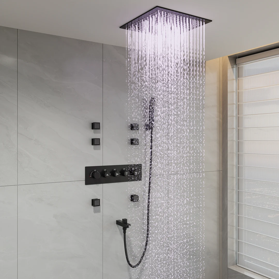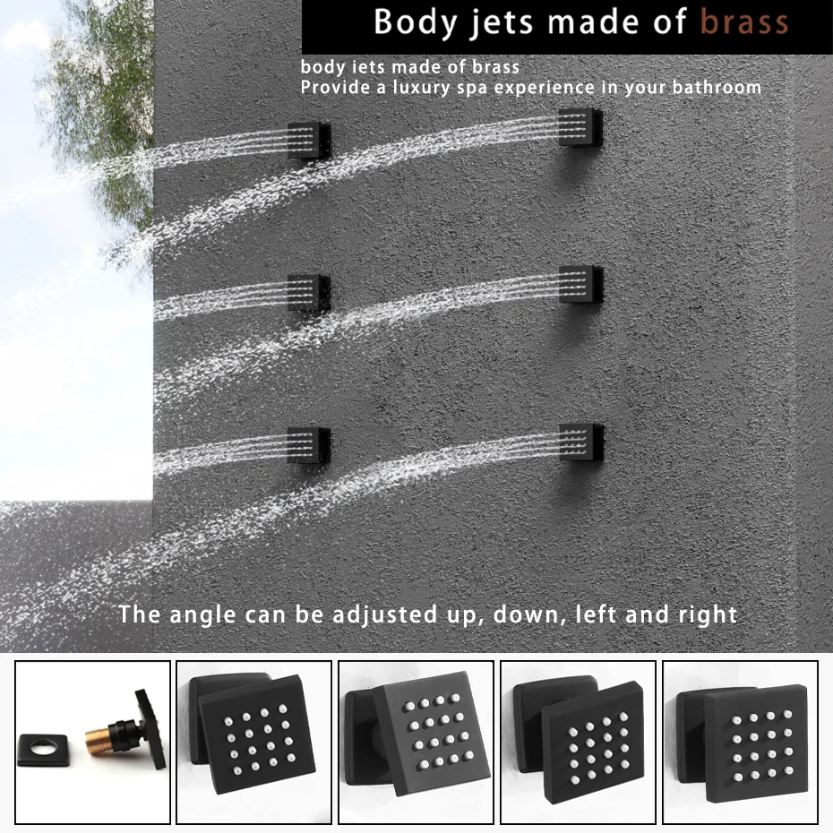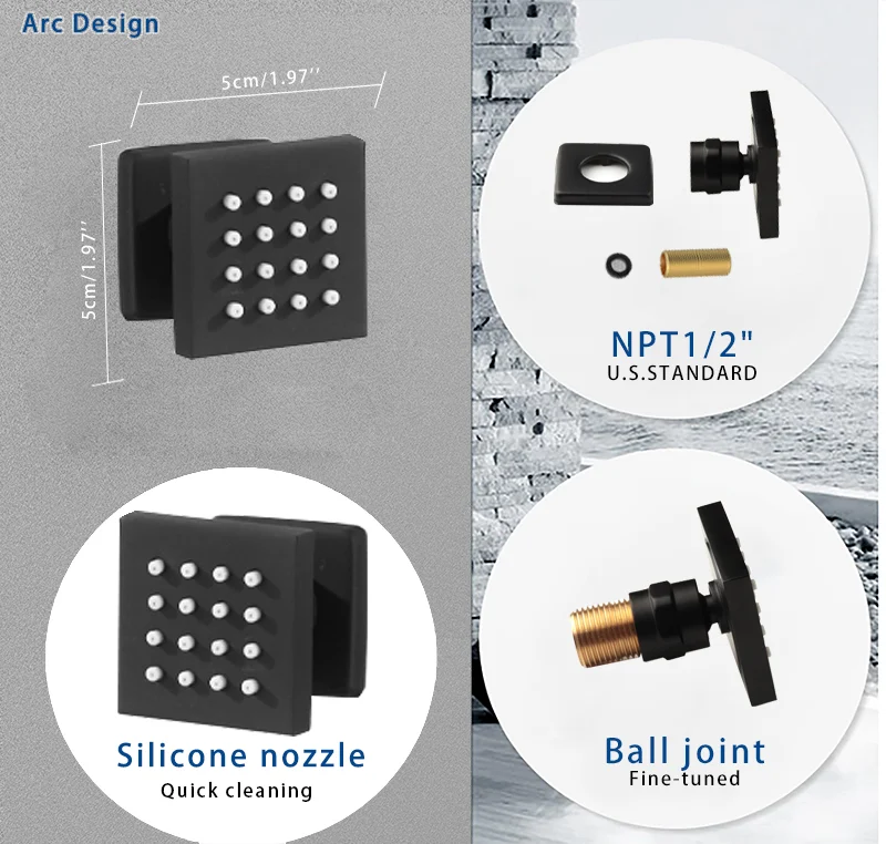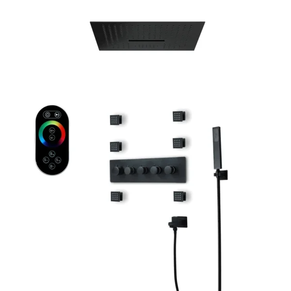 | Included Components | Rain Shower Head, Body Jets, Hand Shower, Shower Hose, Water Supply Holder, Valve & Trims, Mounting Hardware, Remote Control, Spout |