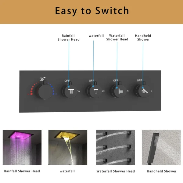 | Feature | LED, Bluetooth, Music Speaker, Rain Shower, Waterfall |