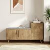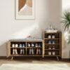 Walnut Wooden Shoe Storage Bench with Right-Side Cabinet for Entryway (47") weights dimensions image