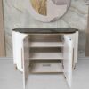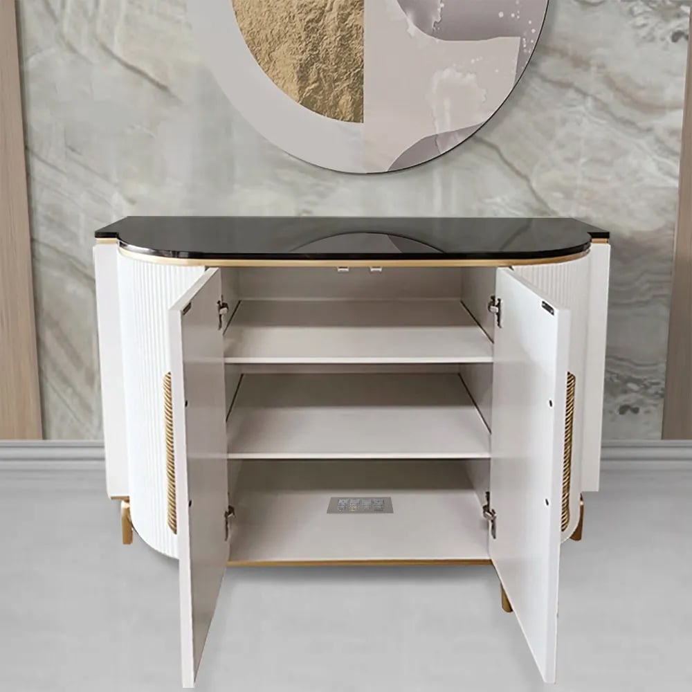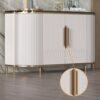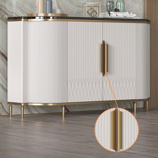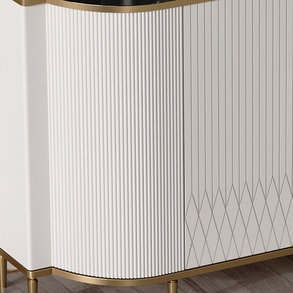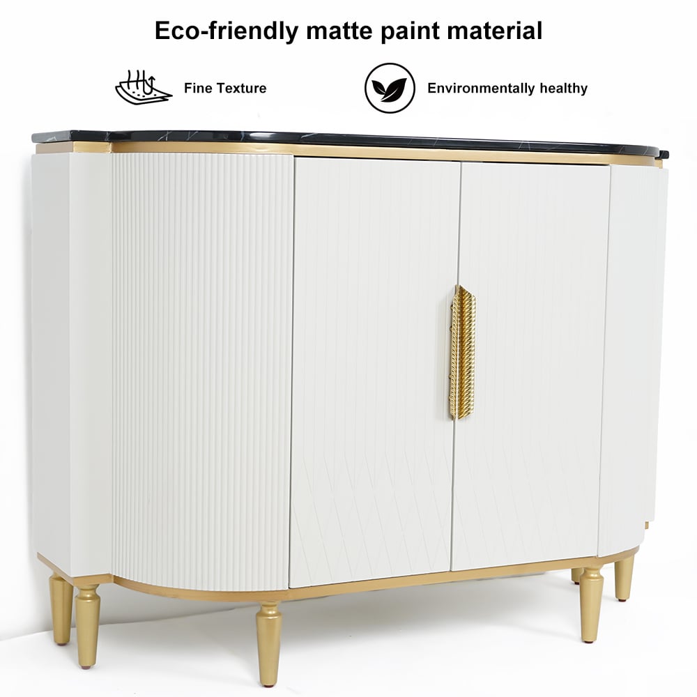 Beautifully designed with exquisite grain, this stunning sideboard cabinet creates a refreshing sense of order in your home. Accented with tasteful geometric lines, this sideboard cabinet lends a glamorous flair that blends well with any modern decor. Featuring 2 doors with 2 adjustable shelves, it can be ideal to store dining linens, plates, and other kitchenware collection, stunning and functional. Boasting refined manufactured wood with faux marble and high-class metal, this sideboard buffet allows long-lasting service and timeless sophistication.