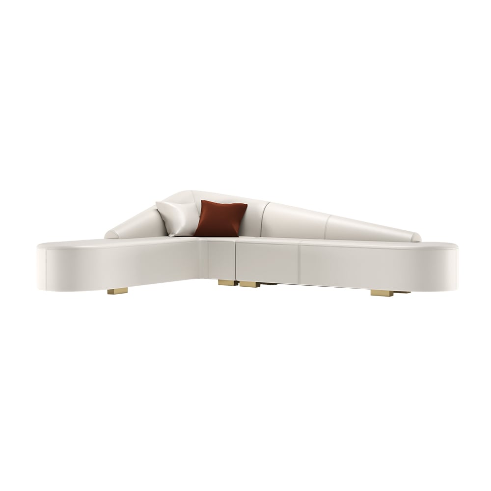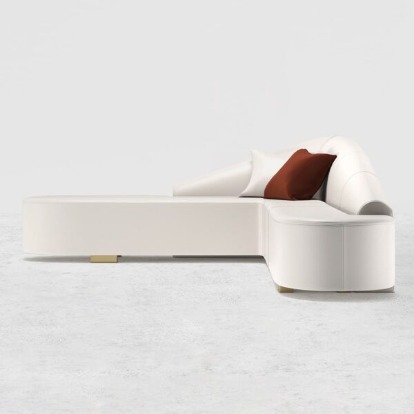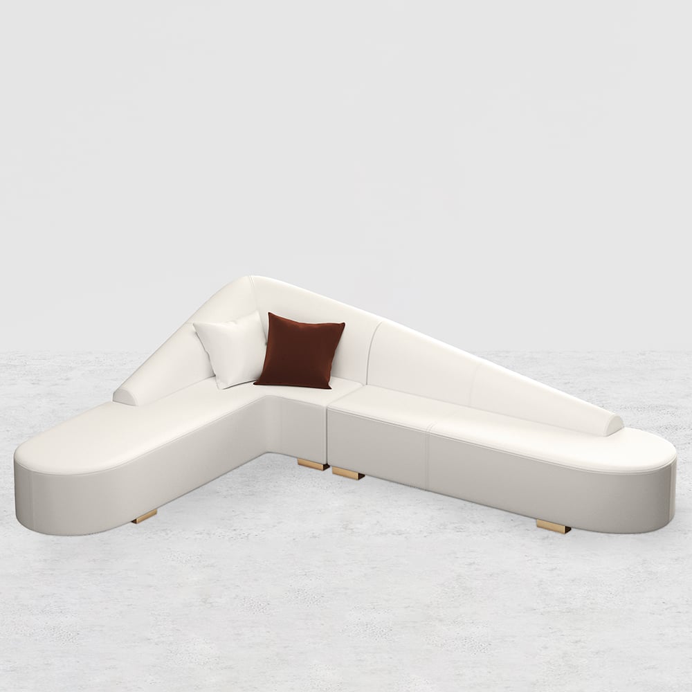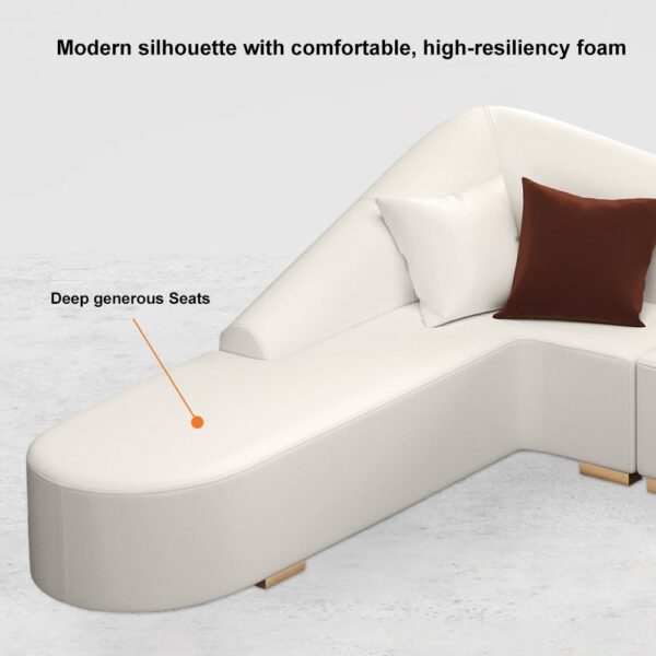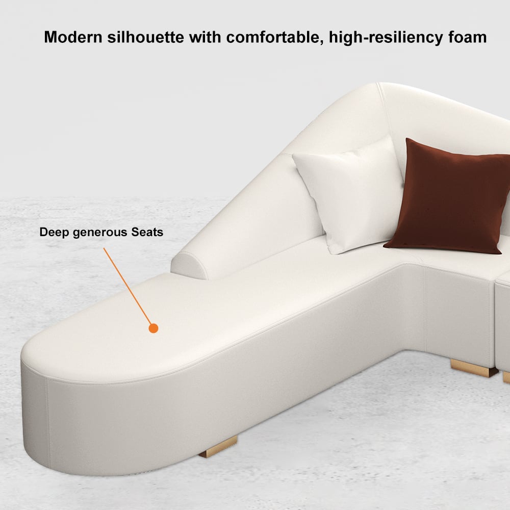 Experience ultimate comfort with this elegant L-shaped sofa featuring high-resilience foam cushions and sturdy metal legs. Its curved back design and performance leather offer both style and durability, perfect for modern living spaces.