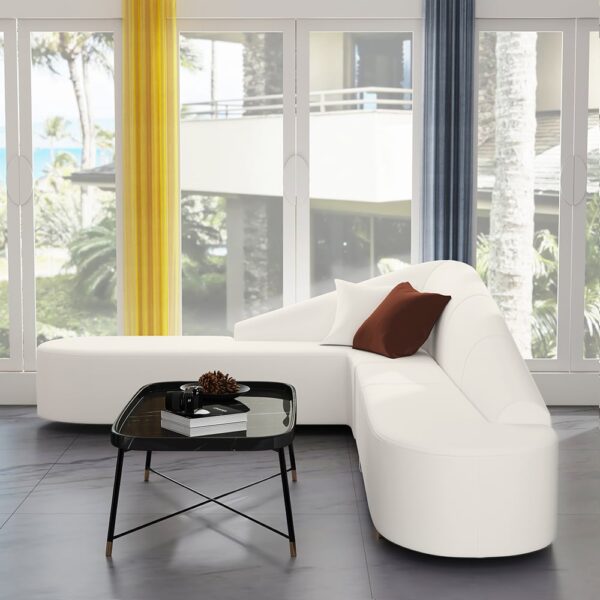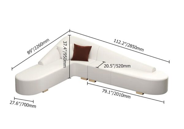 White Modern L-Shaped Corner Sectional Sofa for Living Room Faux Leather Upholstery weights dimensions image